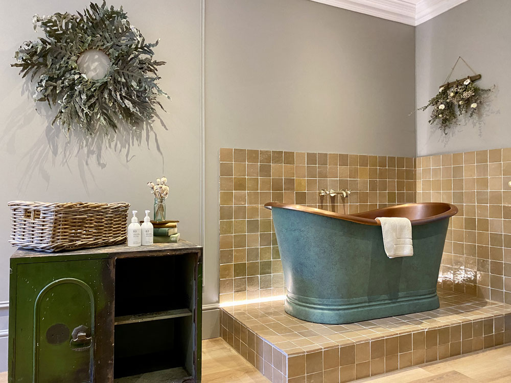 Your elegant bathroom space has been designed to give a spa like experience. Beautiful and stocked with Bath House bathroom products.